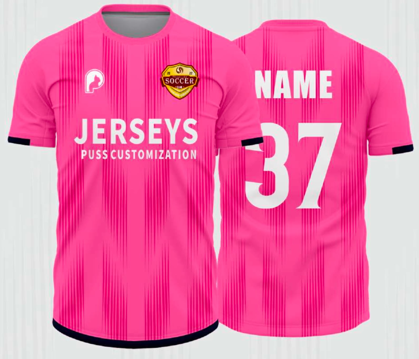 この商品はデザインの変更はできませんが、色の配置や組み合わせなどは自由にできます。またプリントも同様で、 エンブレム、ロゴ、チーム名スポンサー、背番号など、自由にデザイン、プリント可能です。 全ての商品にソックスが無料でつきます。サイズ展開も豊富でキッズから大人までご用意しております。