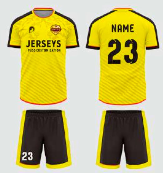 この商品はデザインの変更はできませんが、色の配置や組み合わせなどは自由にできます。またプリントも同様で、 エンブレム、ロゴ、チーム名スポンサー、背番号など、自由にデザイン、プリント可能です。 全ての商品にソックスが無料でつきます。サイズ展開も豊富でキッズから大人までご用意しております。